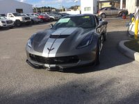 My new ZO6 arrived on Friday and I picked it up on Saturday, 12/06. It is a 3LZ Shark Gray with Blade Silver Strips and chrome wheels. What a car, what a machine!!! I will post some better pics as soon as I can. The other 2 vettes in the pics are my 1988 35th Anniversary and my 2003 ZO6 which I flipped for the new one.